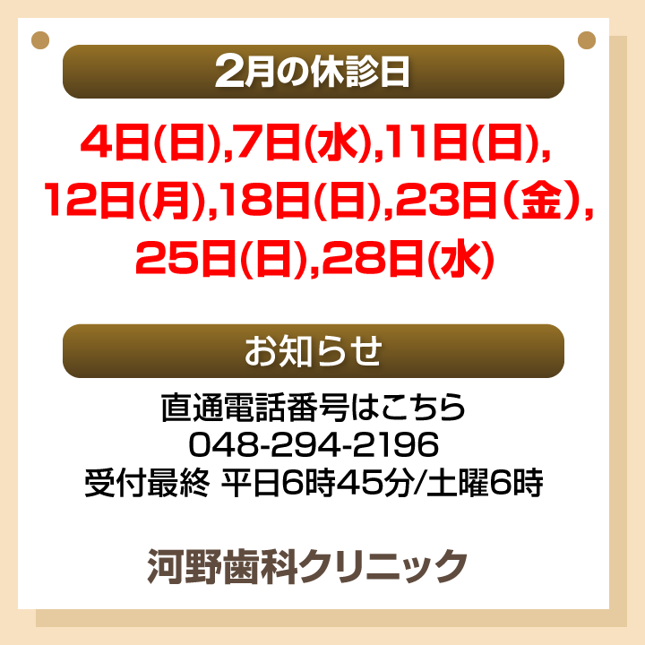 2月休診日情報