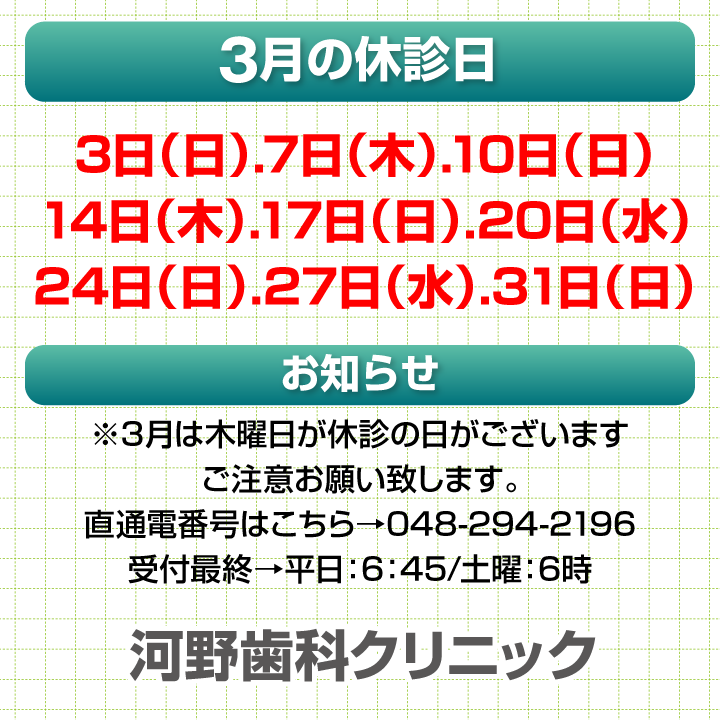 3月休診日情報